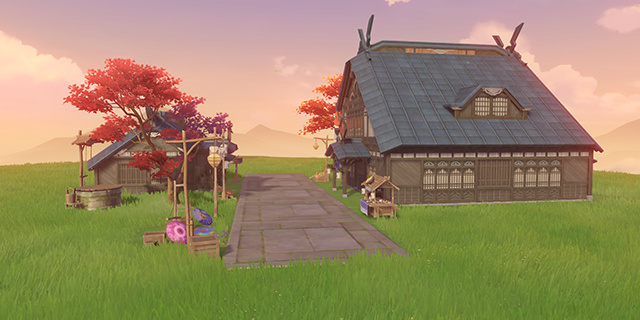 | 描述: 稻妻乡野的村庄,充分还原了绀田村的景致。建筑的「年岁」已高,但并不破旧,呈现出别样的悠然与朴实之感,每座房屋都毫不起眼,似乎再过几年,就能与周边的山野融为一体…这正是良好的藏身地所必备的特质,某位终末番忍者就时常隐藏在这种村庄中,安睡到心满意足。 | |