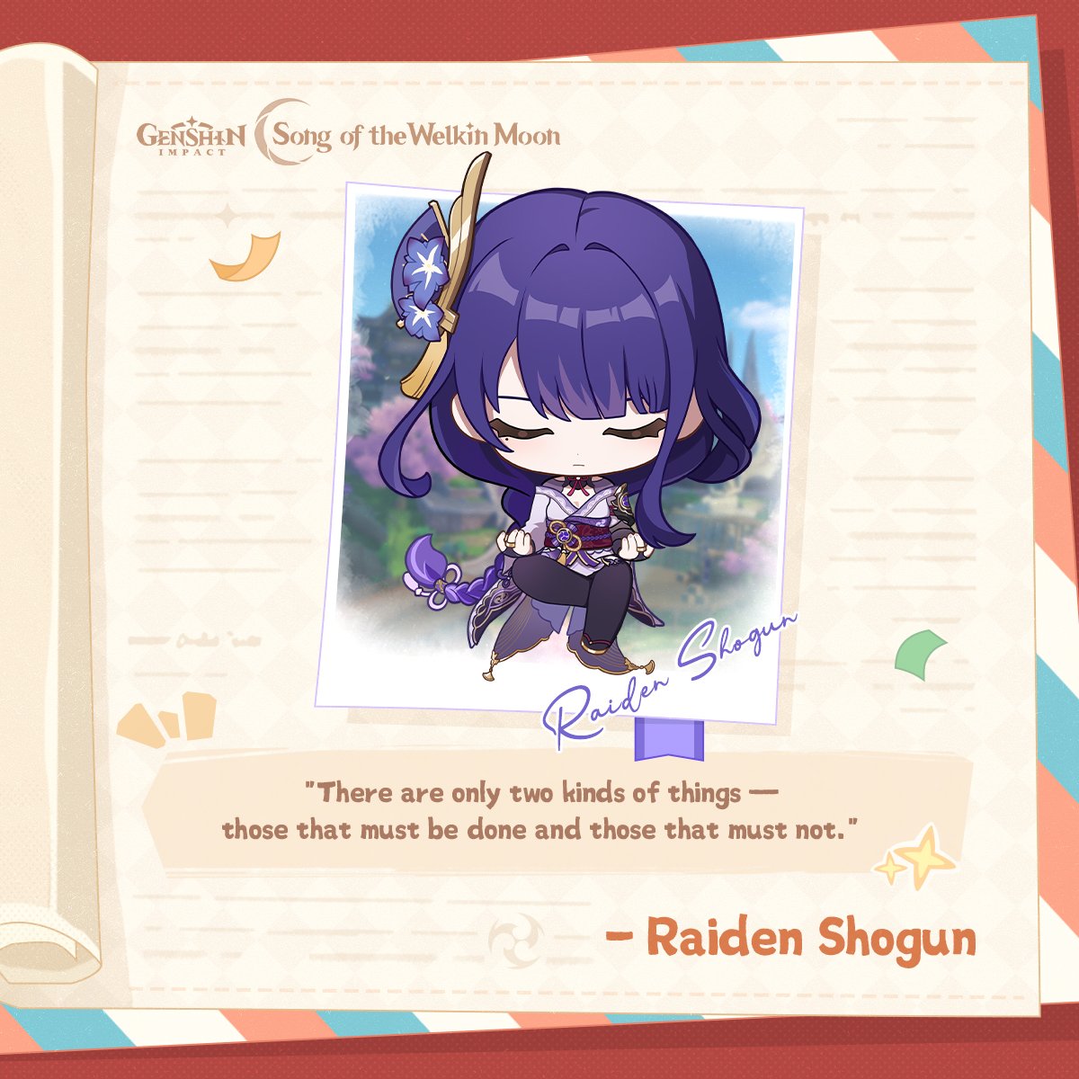 Hello, Traveler! Here are some notes about Her Excellency, the Almighty Narukami Ogosho, God of Thunder, Raiden Shogun. Let's check them out together!